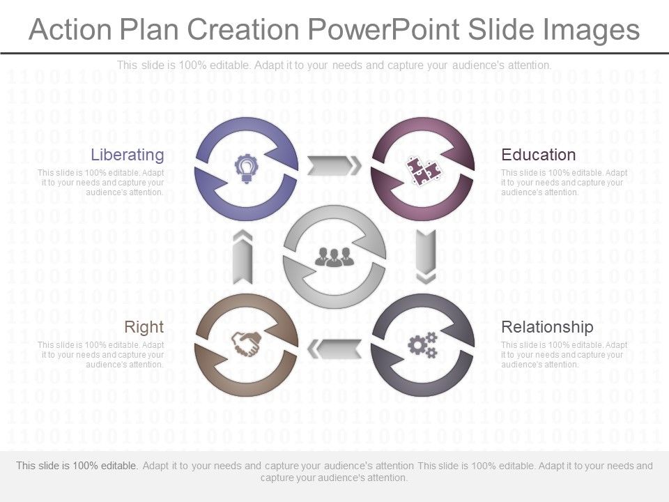 This is a action plan creation powerpoint slide images. This is a four stage process. The stages in this process are liberating, education, right, relationship.