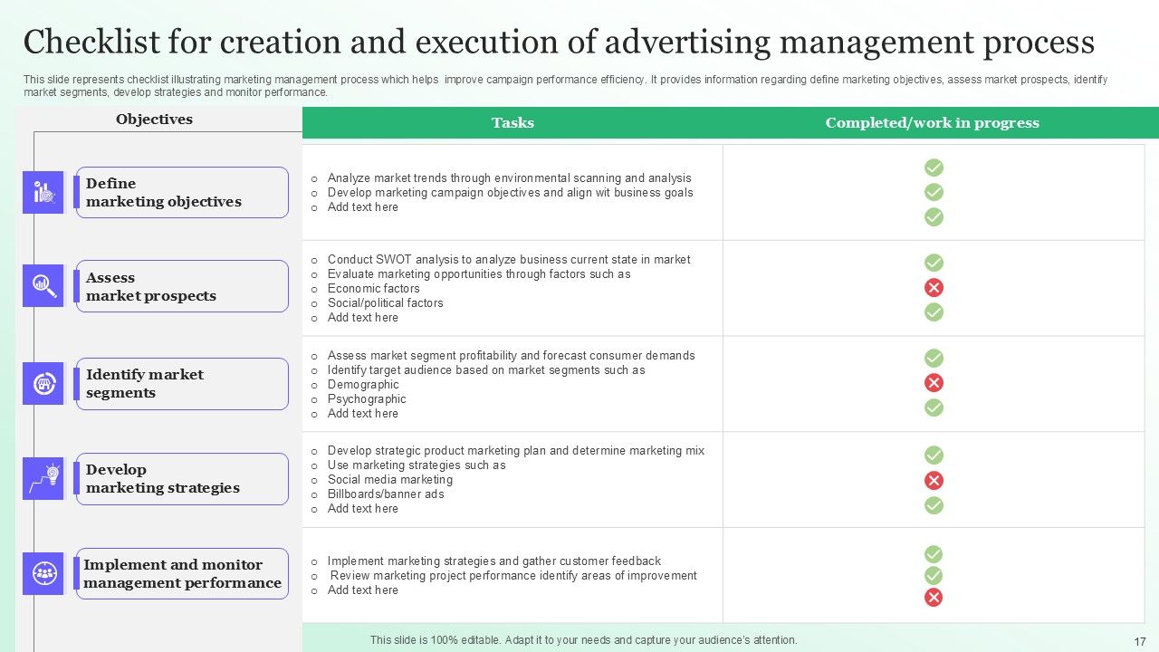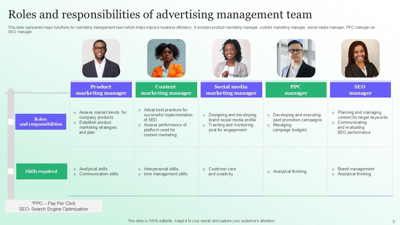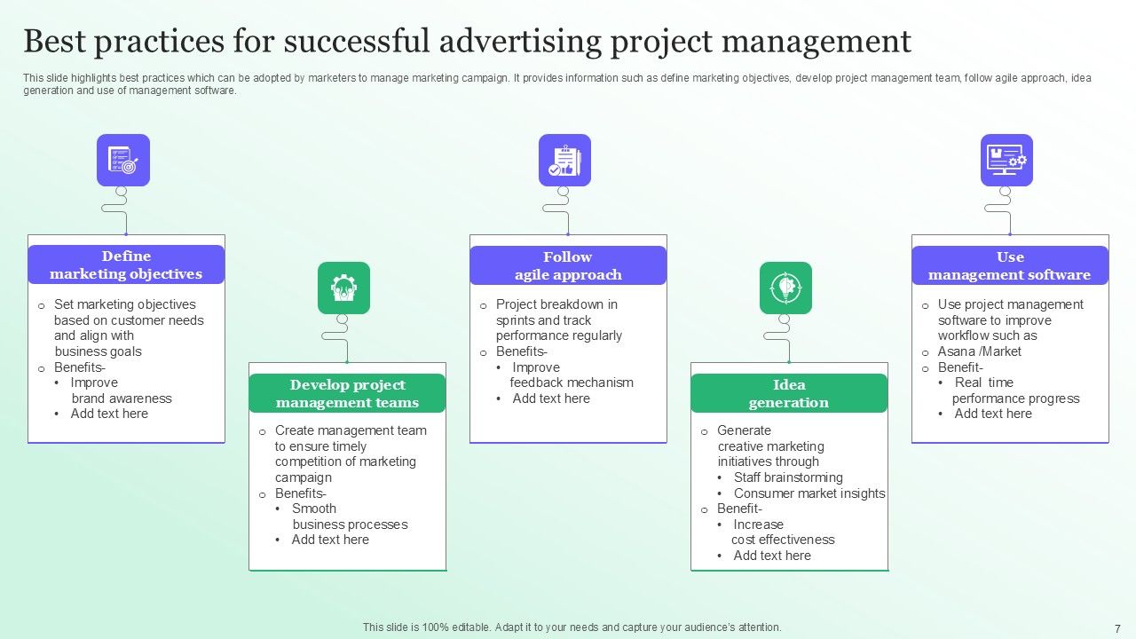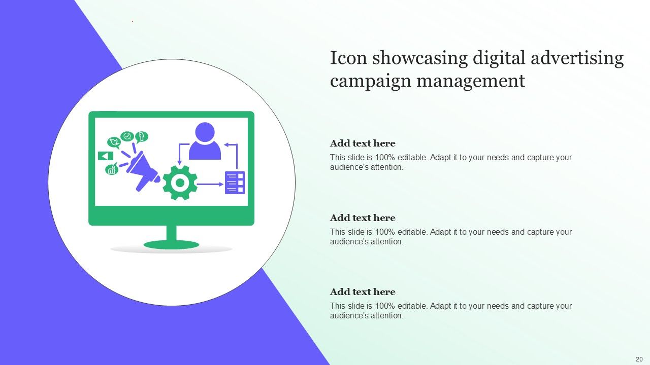 Improve your presentation delivery using this Advertising Management Ppt PowerPoint Presentation Complete Deck With Slides. Support your business vision and objectives using this well-structured PPT deck. This template offers a great starting point for delivering beautifully designed presentations on the topic of your choice. Comprising twenty three this professionally designed template is all you need to host discussion and meetings with collaborators. Each slide is self-explanatory and equipped with high-quality graphics that can be adjusted to your needs. Therefore, you will face no difficulty in portraying your desired content using this PPT slideshow. This PowerPoint slideshow contains every important element that you need for a great pitch. It is not only editable but also available for immediate download and utilization. The color, font size, background, shapes everything can be modified to create your unique presentation layout. Therefore, download it now.