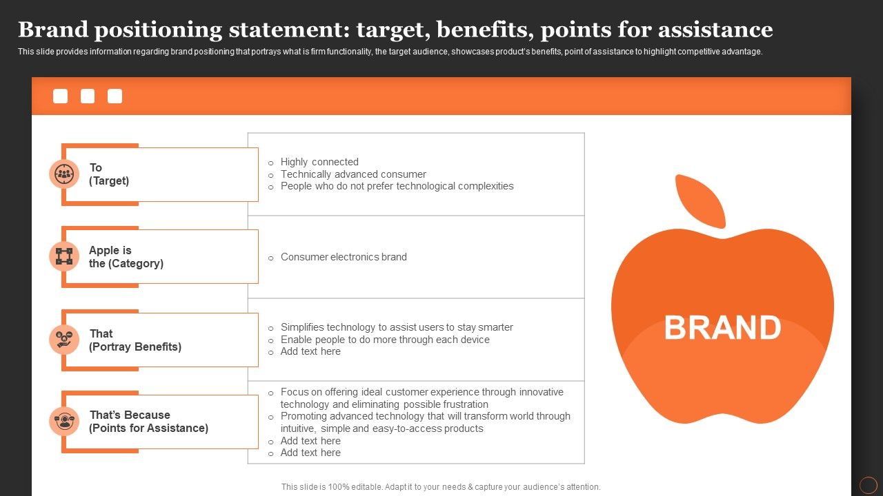 Apples Strategy To Achieve Top Brand Value Position Brand Positioning Statement Target Benefits Points For Assistance Topics PDF