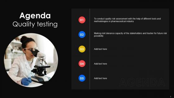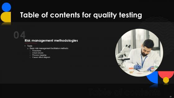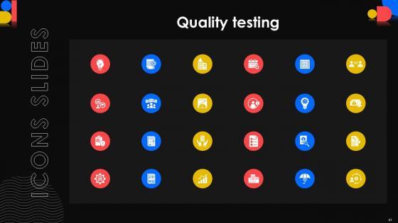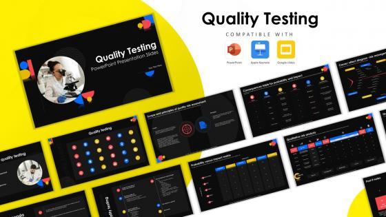 Use this meticulously designed PPT deck to make the data presentation and understanding easy for the audience. It is an ideal option for your presentation as it covers all the critical elements of the concept and design. Bring your best foot forward and show your presentation skills with this expertly-designed Quality Testing Powerpoint Presentation Slides. Take the help of this PowerPoint Set to deliver a neat, professional presentation and win the applause of viewers. Customize the images, text, format, colors, and theme of any and every template of this presentation deck using the help manual come along. Get hold of this PPT bundle from the link below.