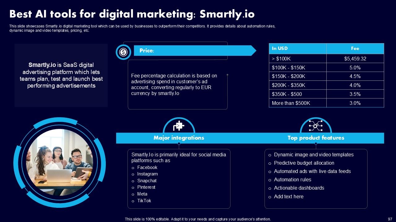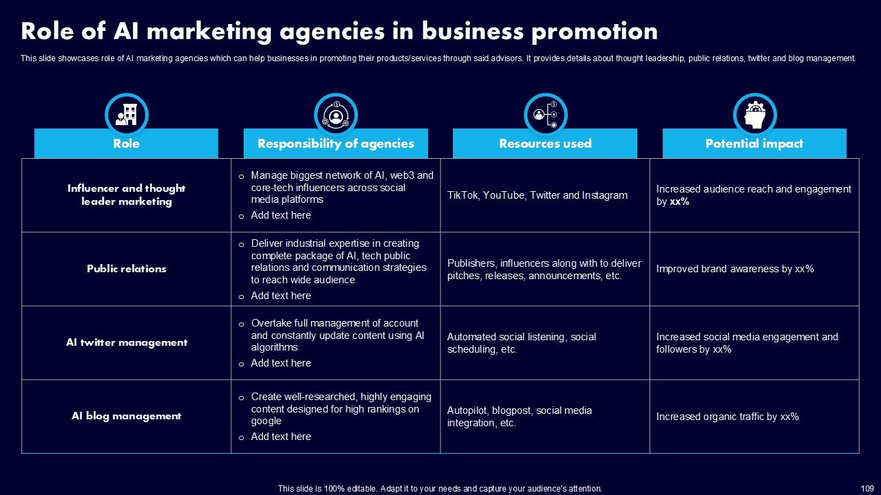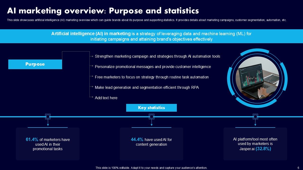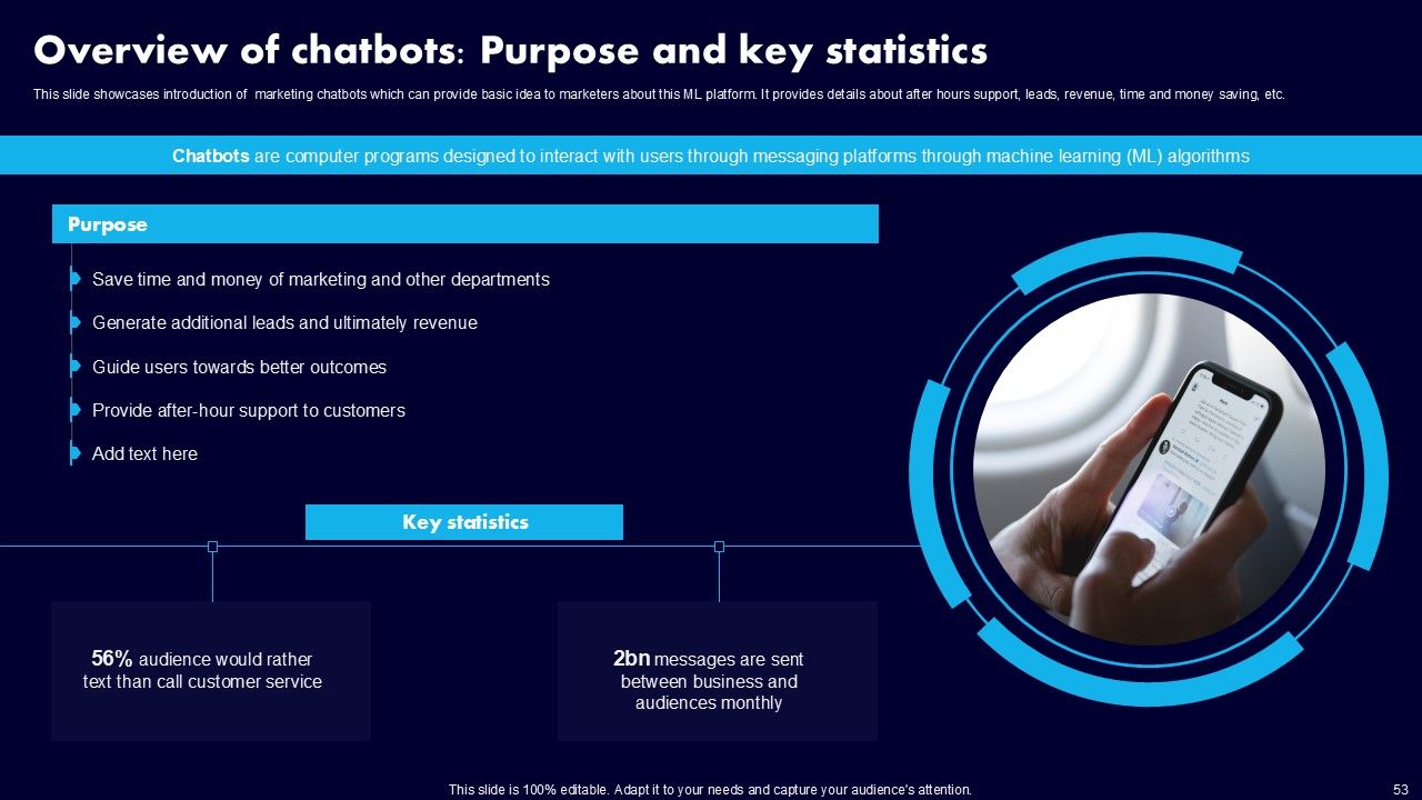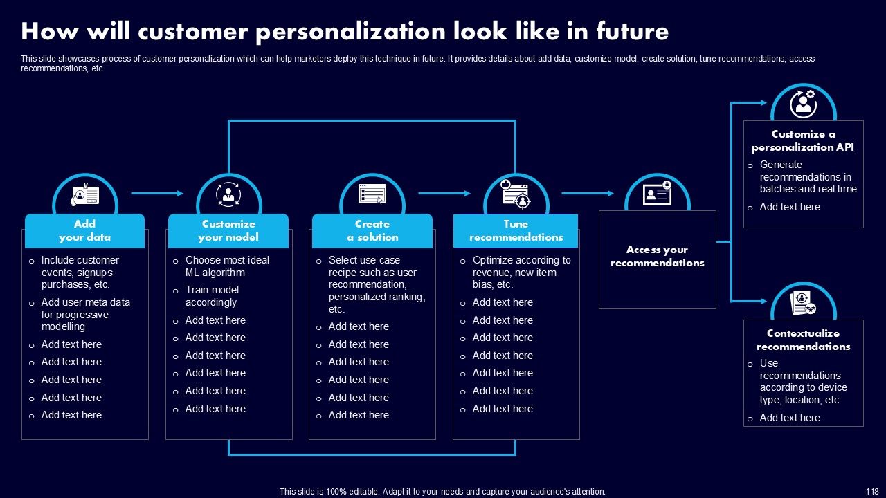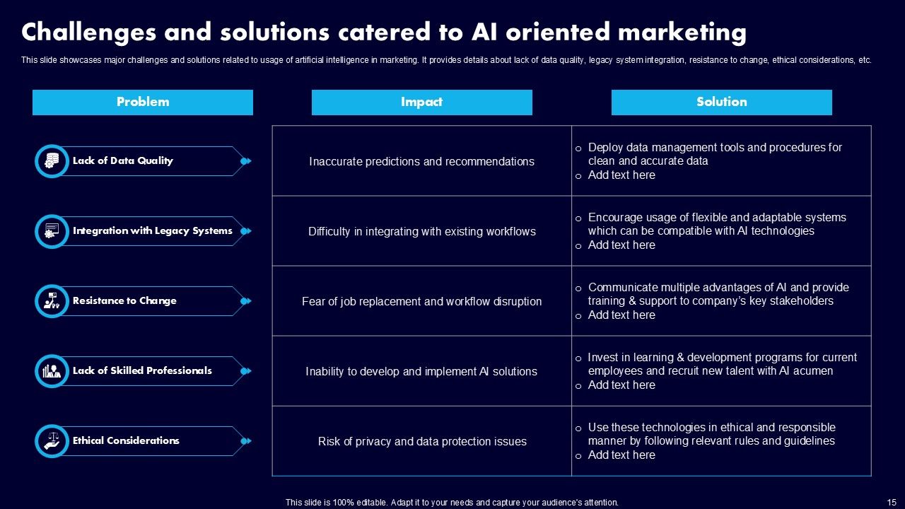 This AI Powered Advertising How To Get More Effective Results From Automation Ppt PowerPoint Presentation Complete Deck With Slides is a primer on how to capitalize on business opportunities through planning, innovation, and market intelligence. The content-ready format of the complete deck will make your job as a decision-maker a lot easier. Use this ready-made PowerPoint Template to help you outline an extensive and legible plan to capture markets and grow your company on the right path, at an exponential pace. What is even more amazing is that this presentation is completely editable and 100 percent customizable. This one hundred ninteen slide complete deck helps you impress a roomful of people with your expertise in business and even presentation. Craft such a professional and appealing presentation for that amazing recall value. Download now.