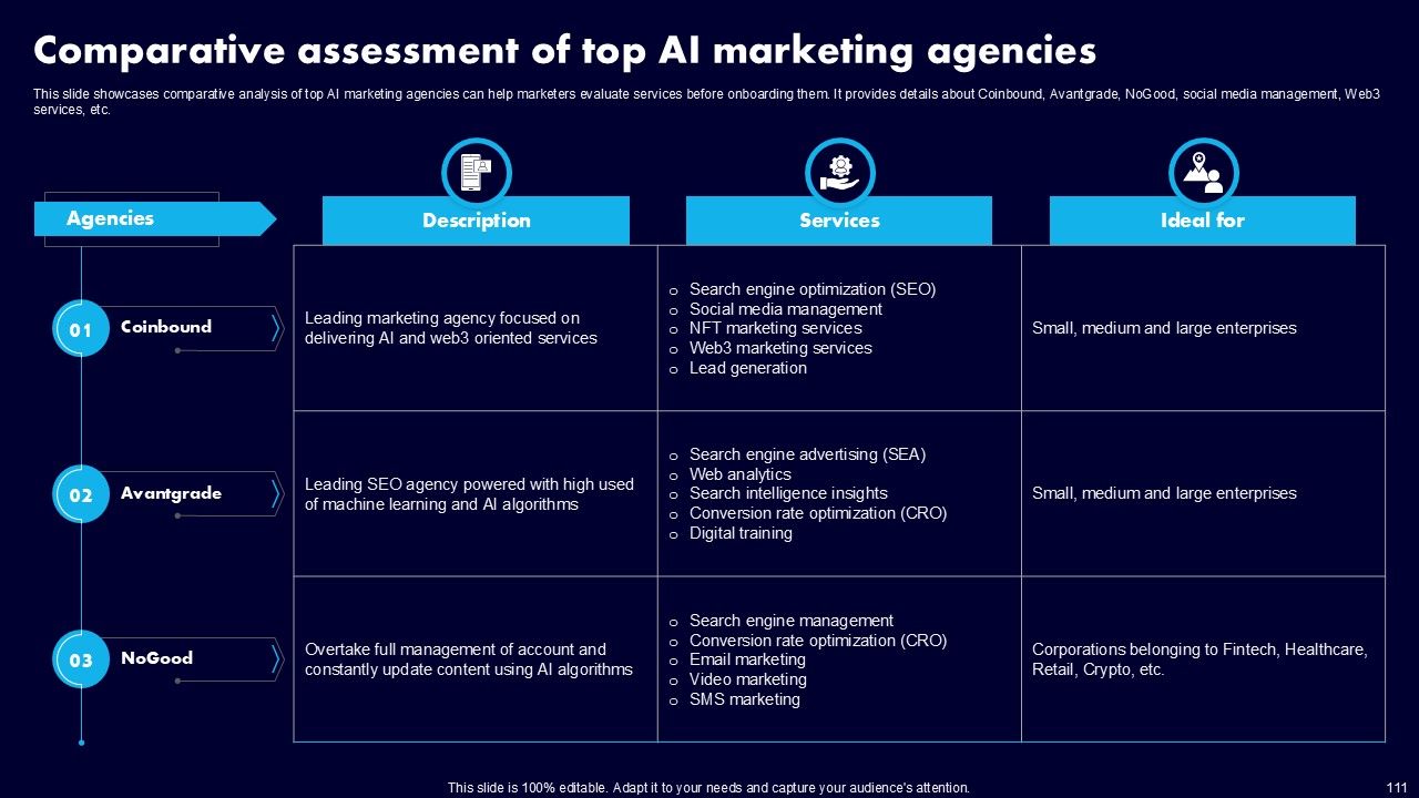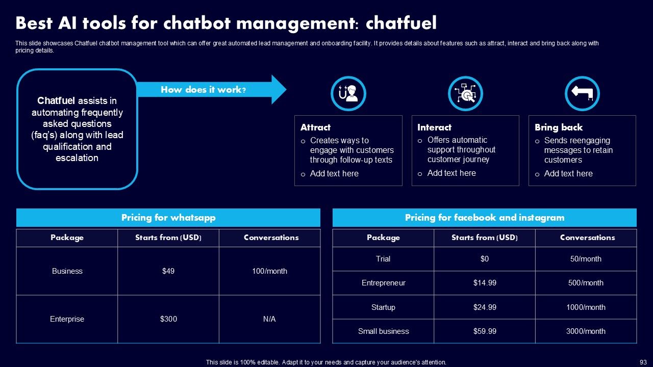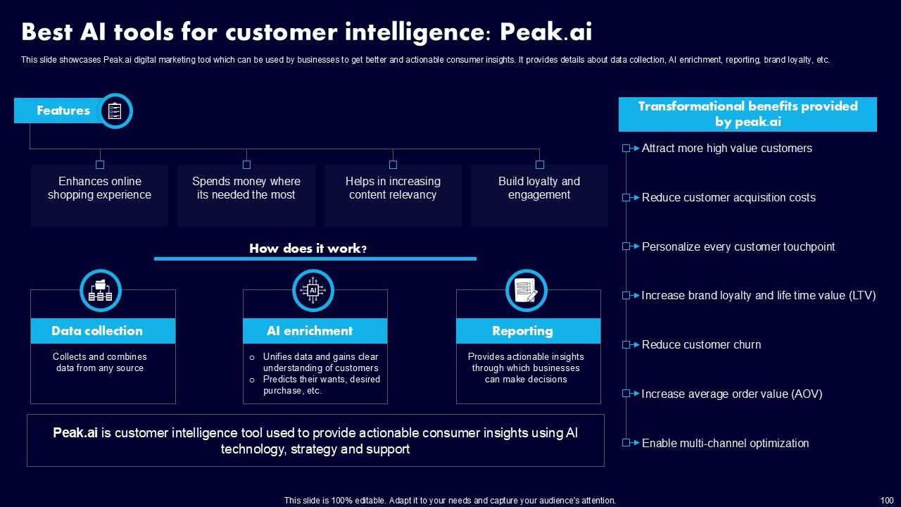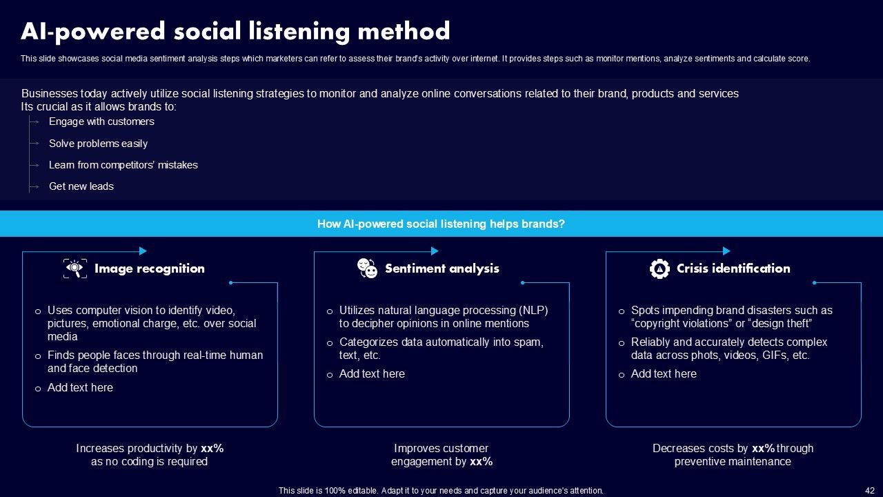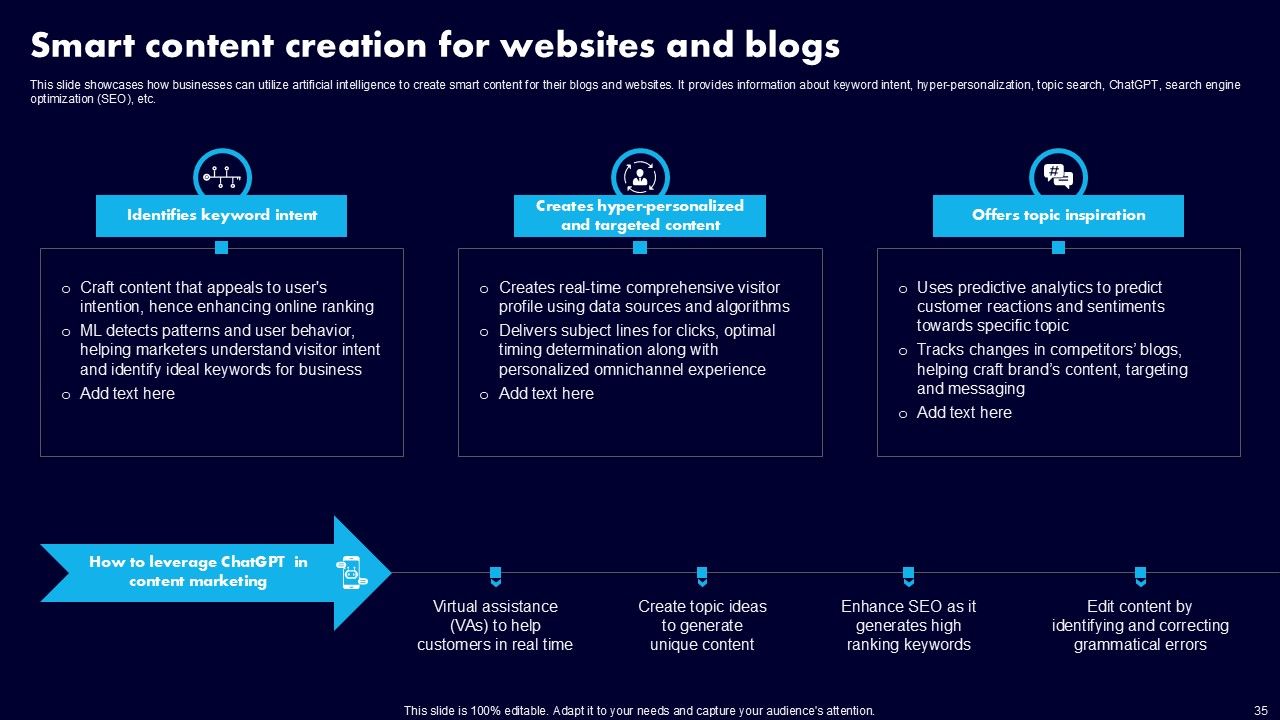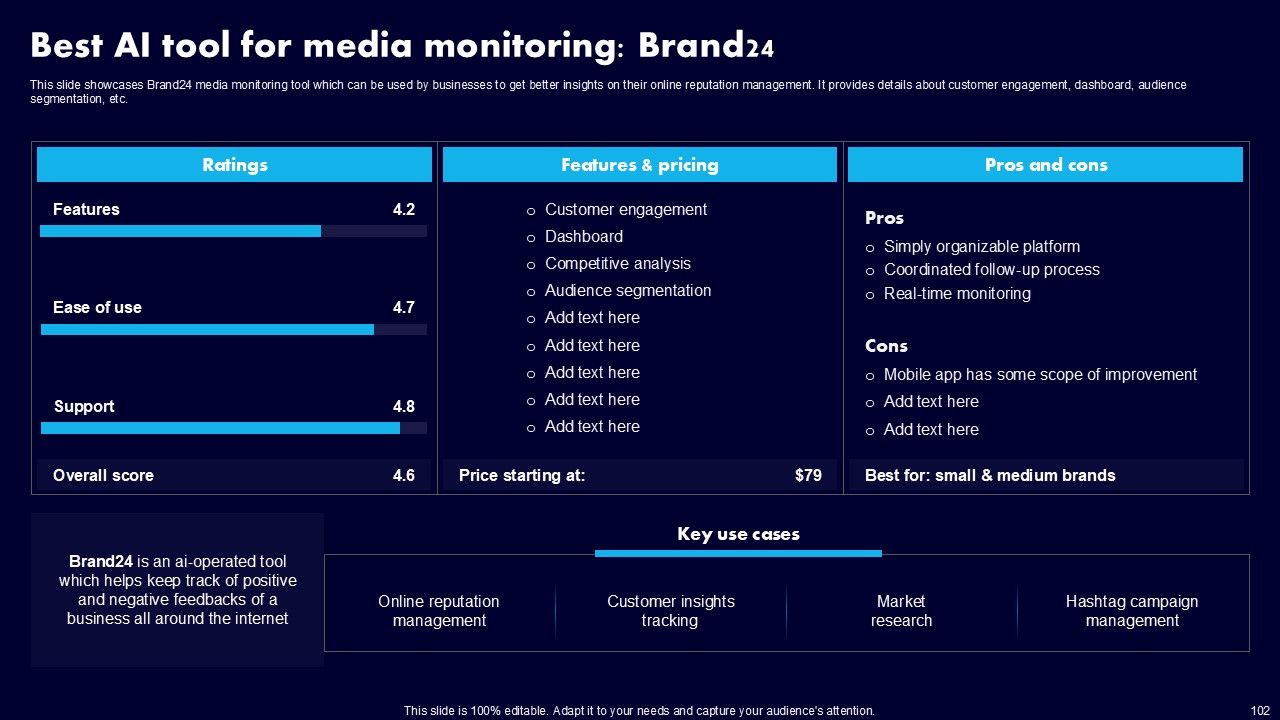This AI Powered Advertising How To Get More Effective Results From Automation Ppt PowerPoint Presentation Complete Deck With Slides is a primer on how to capitalize on business opportunities through planning, innovation, and market intelligence. The content-ready format of the complete deck will make your job as a decision-maker a lot easier. Use this ready-made PowerPoint Template to help you outline an extensive and legible plan to capture markets and grow your company on the right path, at an exponential pace. What is even more amazing is that this presentation is completely editable and 100 percent customizable. This one hundred ninteen slide complete deck helps you impress a roomful of people with your expertise in business and even presentation. Craft such a professional and appealing presentation for that amazing recall value. Download now.