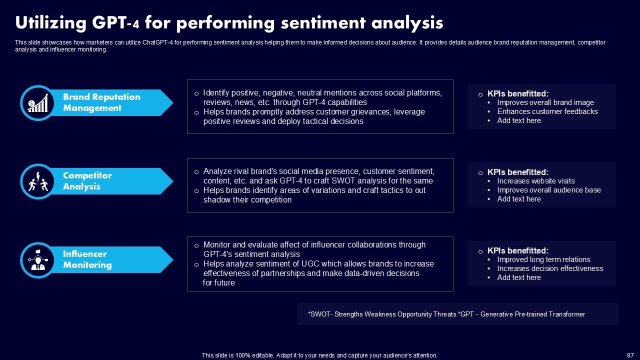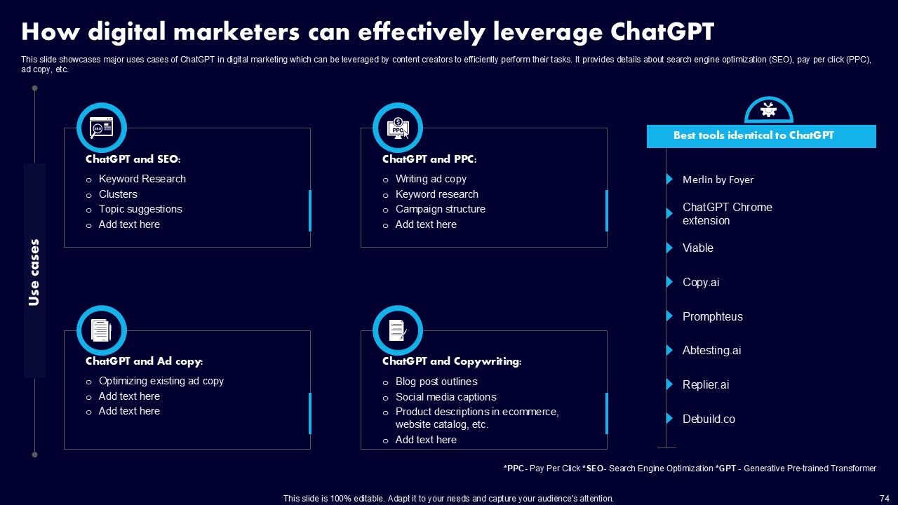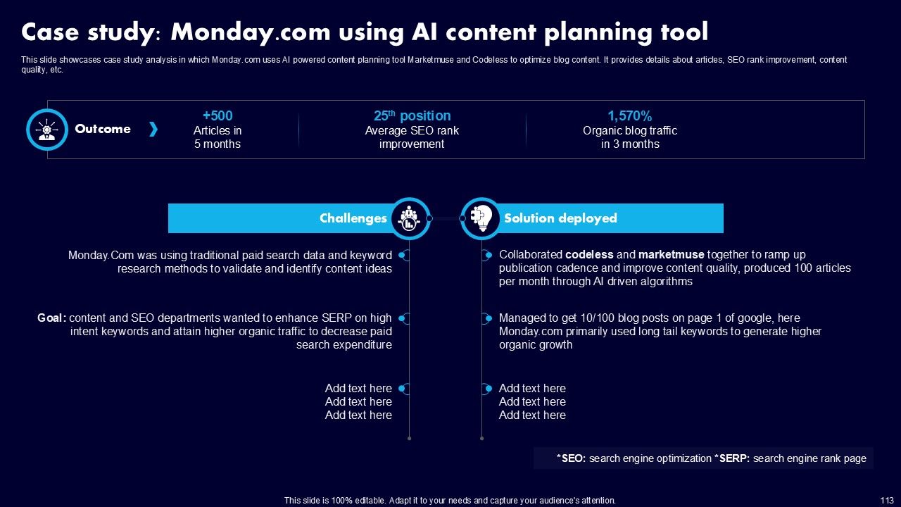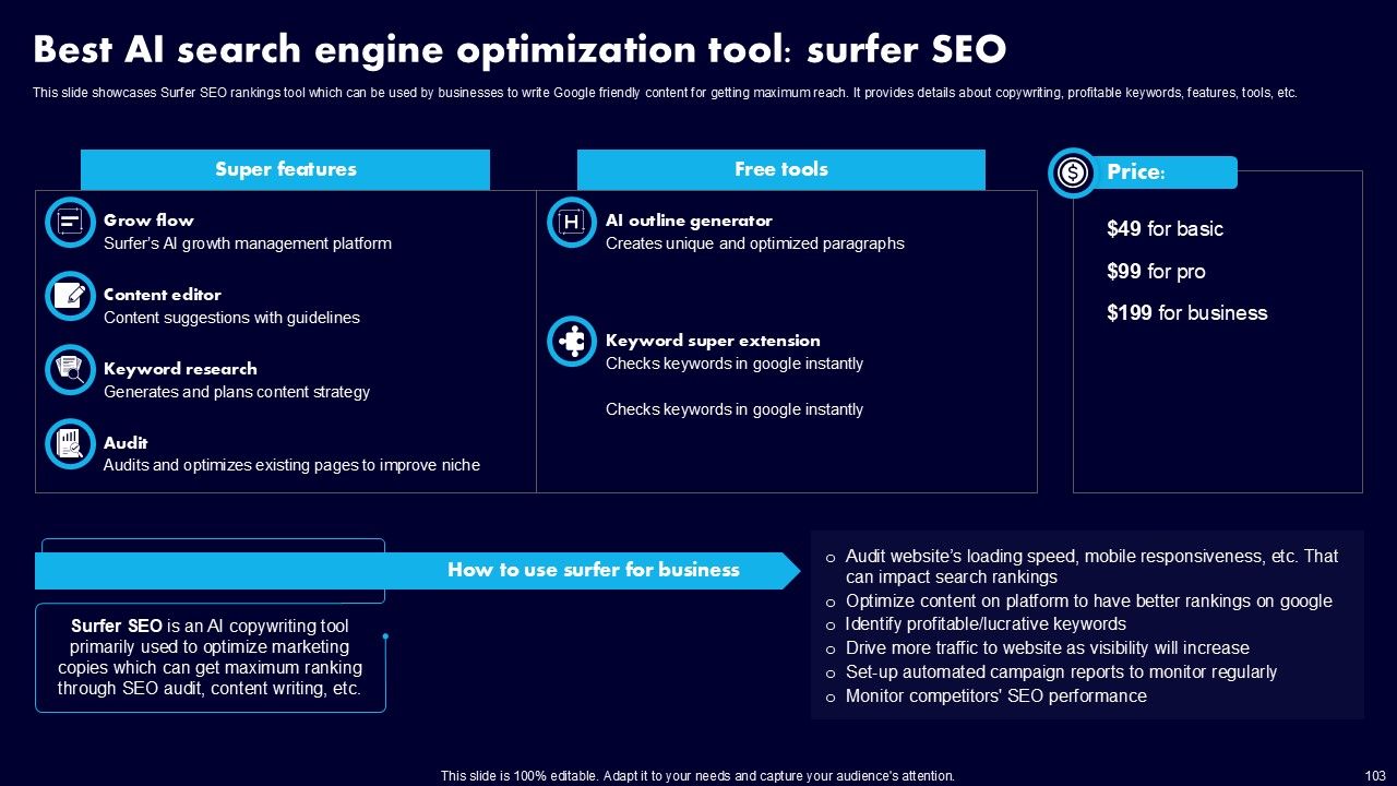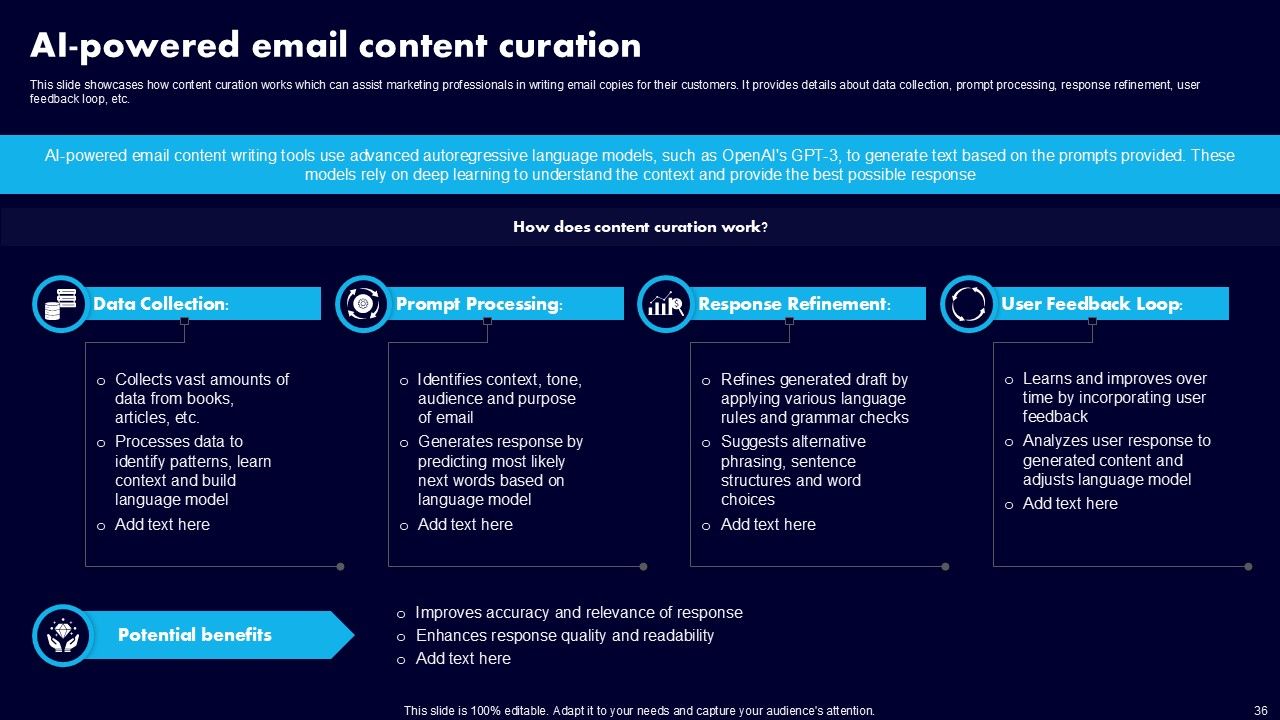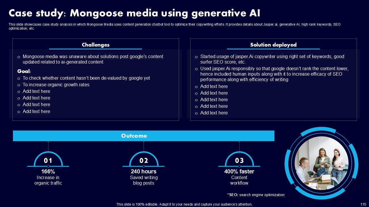 This AI Powered Advertising How To Get More Effective Results From Automation Ppt PowerPoint Presentation Complete Deck With Slides is a primer on how to capitalize on business opportunities through planning, innovation, and market intelligence. The content-ready format of the complete deck will make your job as a decision-maker a lot easier. Use this ready-made PowerPoint Template to help you outline an extensive and legible plan to capture markets and grow your company on the right path, at an exponential pace. What is even more amazing is that this presentation is completely editable and 100 percent customizable. This one hundred ninteen slide complete deck helps you impress a roomful of people with your expertise in business and even presentation. Craft such a professional and appealing presentation for that amazing recall value. Download now.