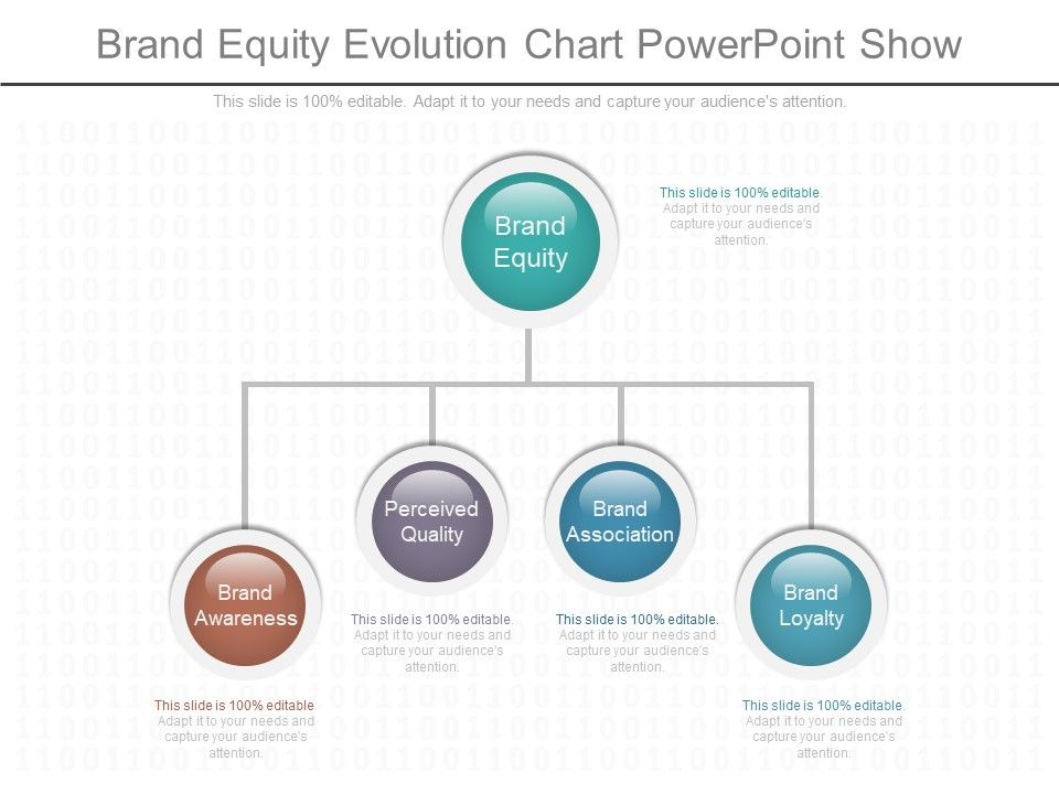 This is a brand equity evolution chart powerpoint show. This is a five stage process. The stages in this process are brand equity, brand awareness, perceived quality, brand association, brand loyalty.