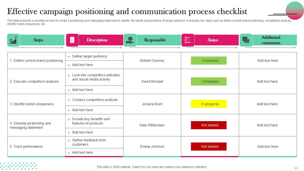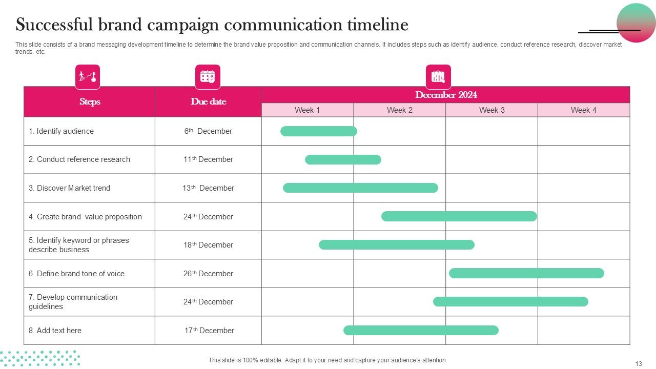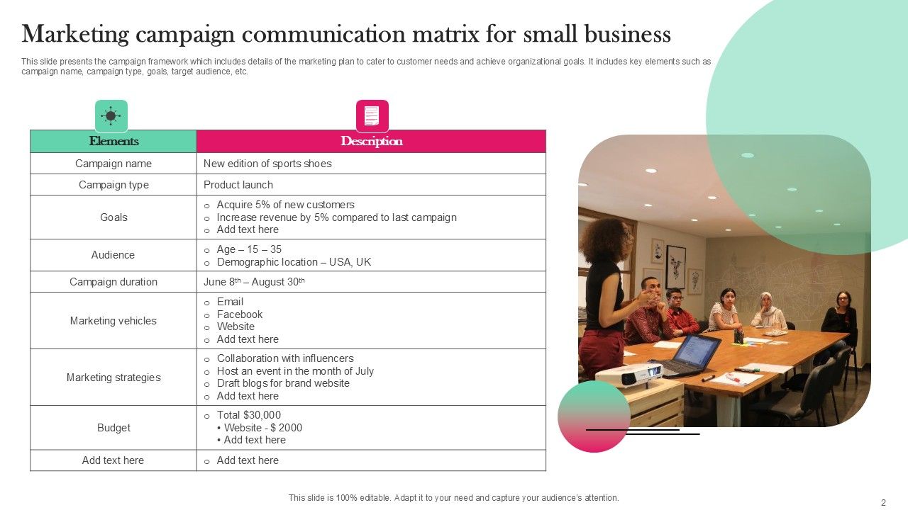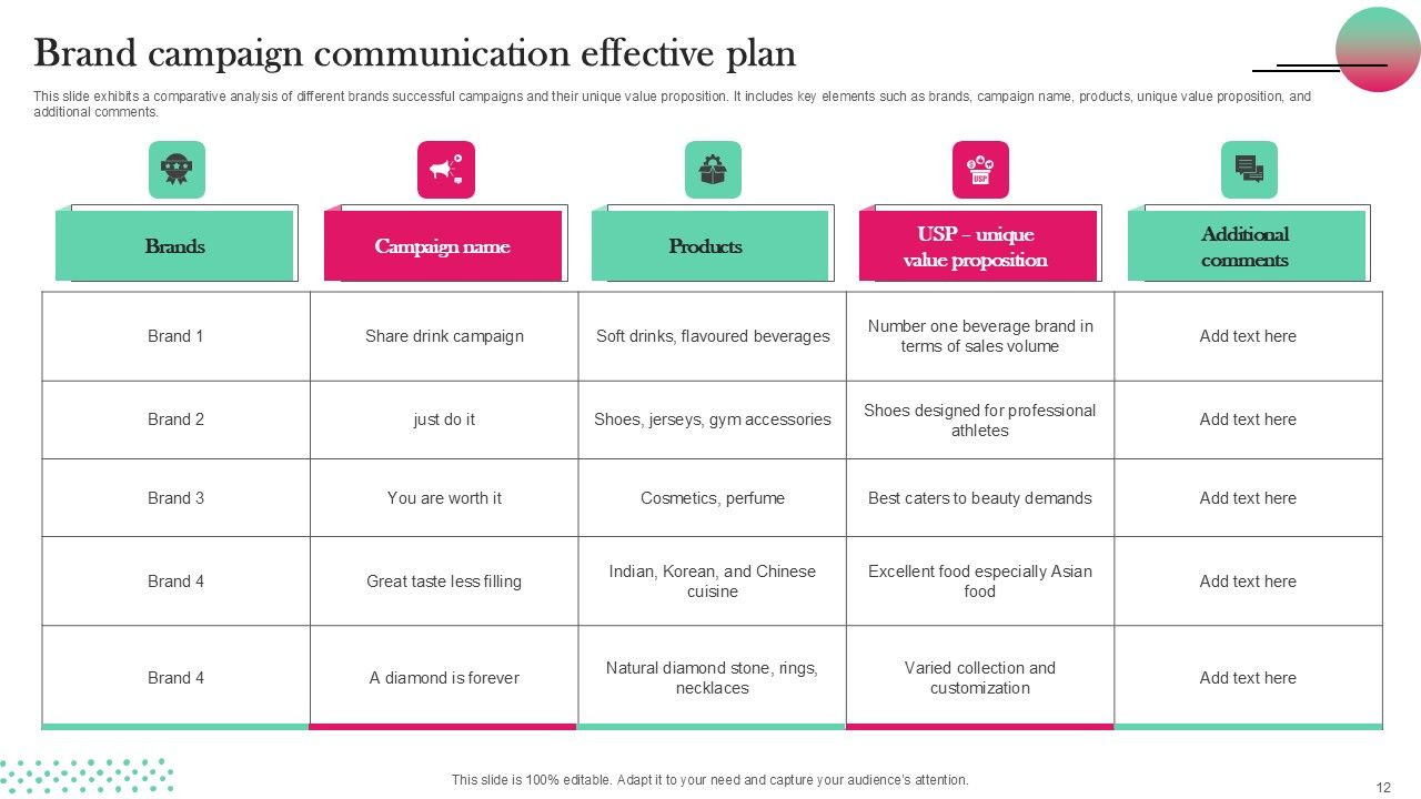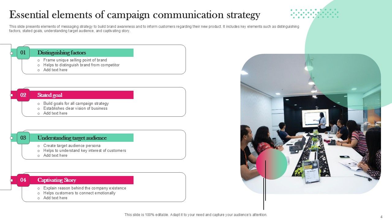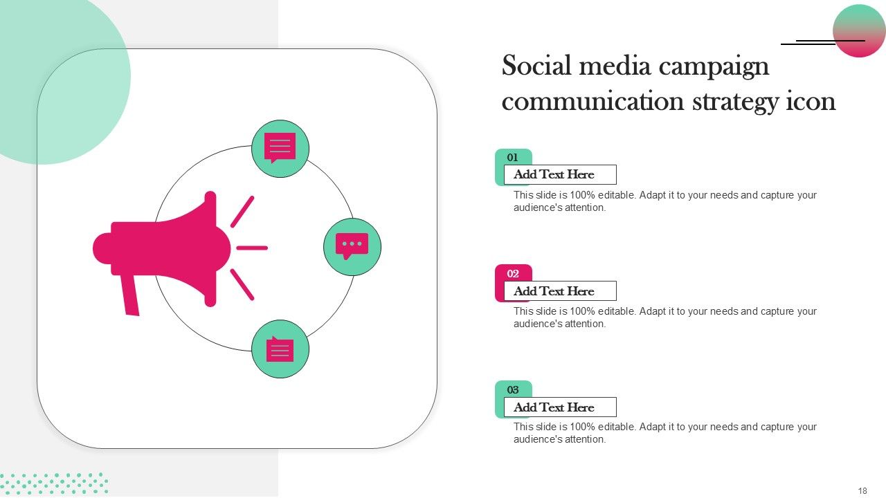 If designing a presentation takes a lot of your time and resources and you are looking for a better alternative, then this Campaign Communication Ppt PowerPoint Presentation Complete Deck With Slides is the right fit for you. This is a prefabricated set that can help you deliver a great presentation on the topic. All the twenty slides included in this sample template can be used to present a birds-eye view of the topic. These slides are also fully editable, giving you enough freedom to add specific details to make this layout more suited to your business setting. Apart from the content, all other elements like color, design, theme are also replaceable and editable. This helps in designing a variety of presentations with a single layout. Not only this, you can use this PPT design in formats like PDF, PNG, and JPG once downloaded. Therefore, without any further ado, download and utilize this sample presentation as per your liking.