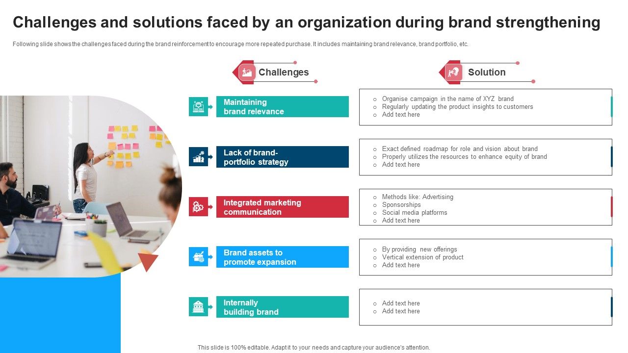 Challenges And Solutions Faced By An Organization During Brand Strengthening Guidelines PDF with all 9 slides: