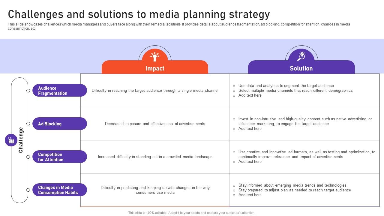 Challenges And Solutions To Media Planning Strategy Ppt PowerPoint Presentation File Pictures PDF
