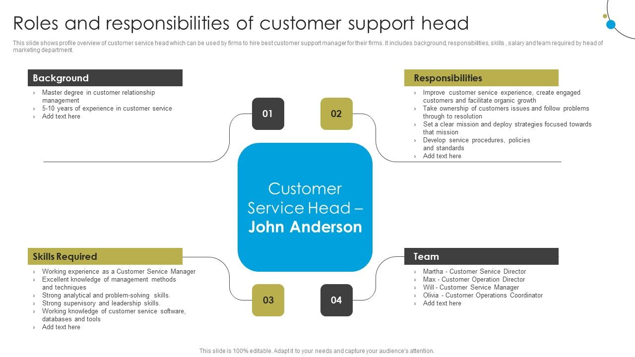 Service Strategy Guide To Maximize Customer Experience Roles And Responsibilities Of Customer Support Head Sample PDF