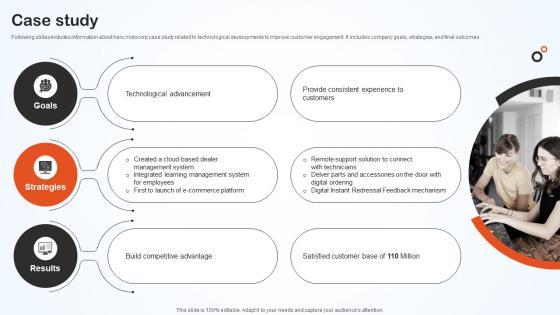 Following slides includes information about hero motocorp case study related to technological developments to improve customer engagement. It includes company goals, strategies, and final outcomes. Slidegeeks is one of the best resources for PowerPoint templates. You can download easily and regulate Case Study Hero Bike Company Profile CP SS V for your personal presentations from our wonderful collection. A few clicks is all it takes to discover and get the most relevant and appropriate templates. Use our Templates to add a unique zing and appeal to your presentation and meetings. All the slides are easy to edit and you can use them even for advertisement purposes. Following slides includes information about hero motocorp case study related to technological developments to improve customer engagement. It includes company goals, strategies, and final outcomes.