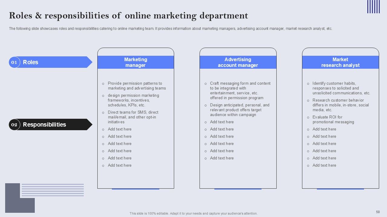 This Comprehensive Guide To Permission Based Promotional Techniques Ppt PowerPoint Presentation Complete Deck With Slides is meant to inspire a sense of awe about the organization, planning, skill and innovation you bring to business, and the ways it pays you back. The presentation template in seventy three slides also lists the roles and duties of a business organization and its members in building a wholesome, prosperous society. You can create a comprehensive chart on business functions and showcase specifics that make you special due to the 100 percent editable and customizable nature of the presentation. Encourage stakeholders to dig deep into business knowledge and use it in practice to deliver quality products and service with the uses of this PPT Template for the ages. Download now.