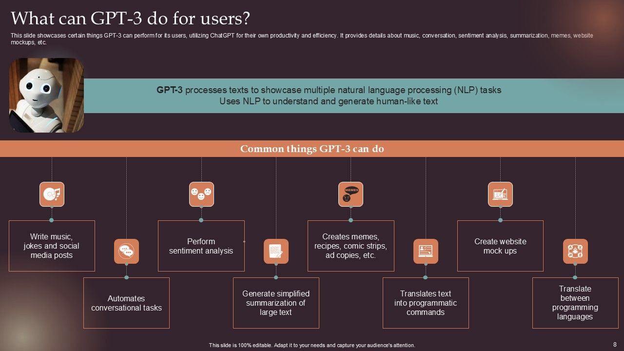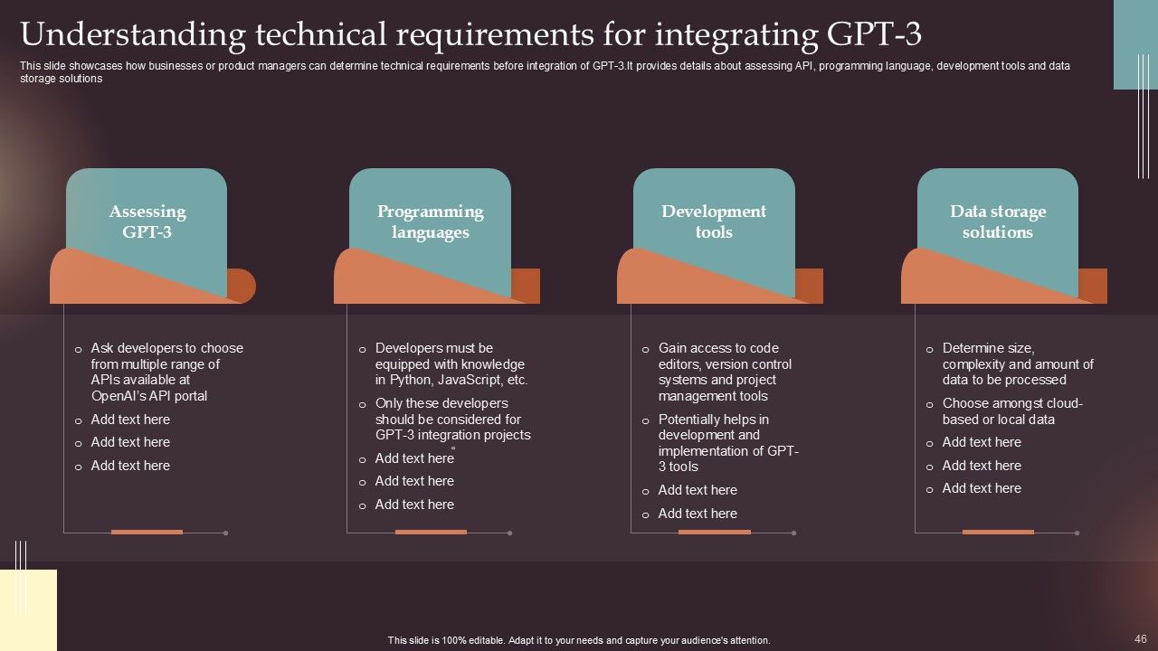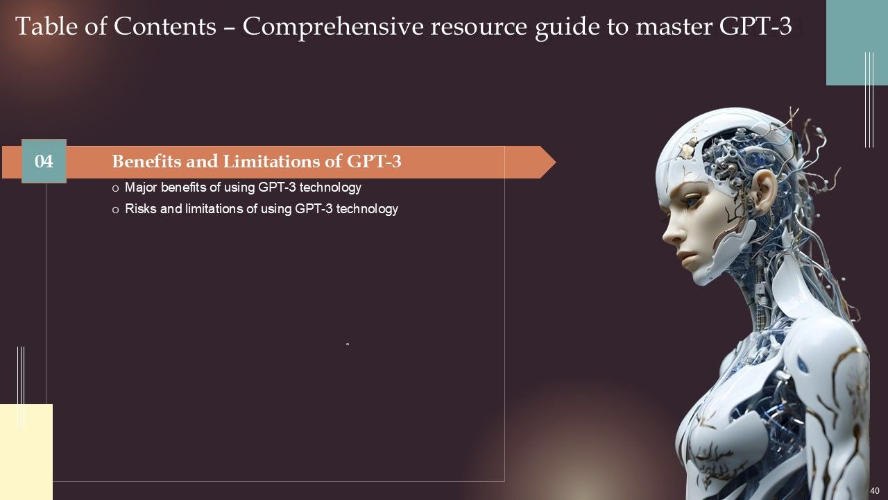 Whether it is for your individual use or business purpose, providing information in a clear format is often an added advantage, as this Comprehensive Resource Guide To Master GPT 3 Ppt PowerPoint Presentation Complete Deck With Slides does so wonderfully well. Incorporate this content-ready, versatile PowerPoint complete deck in fifty eight slides to significantly enhance your chances of success. It will help you talk about multiple components of business and be more efficient. The presentation template is also equipped to do this with its 100 percent editable and customizable capability. Download now.