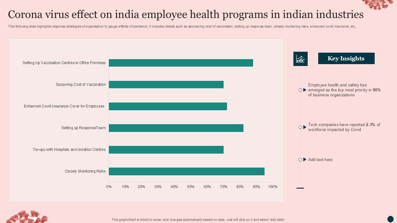 Showcasing this set of slides titled Corona Virus Effect On India Employee Health Programs In Indian Industries Pictures PDF. The topics addressed in these templates are Key Insights, Organizations, Industries. All the content presented in this PPT design is completely editable. Download it and make adjustments in color, background, font etc. as per your unique business setting.