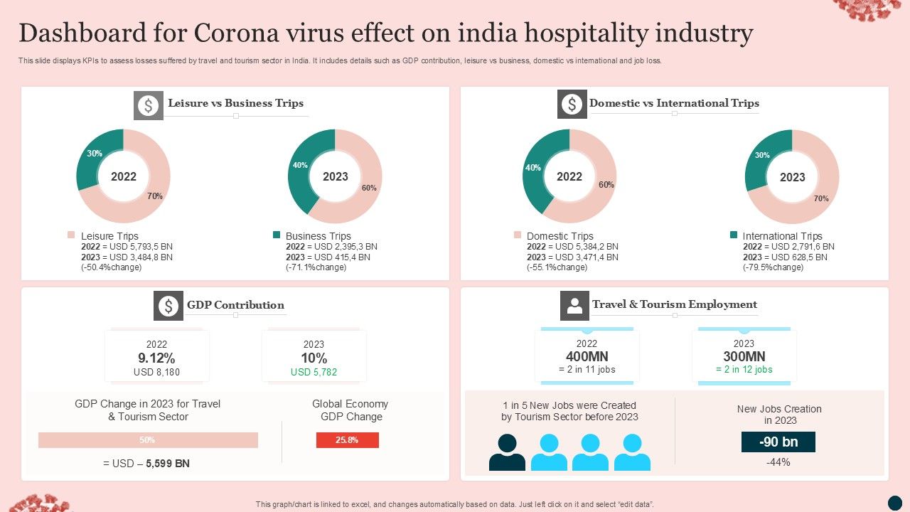 Pitch your topic with ease and precision using this Dashboard For Corona Virus Effect On India Hospitality Industry Download PDF. This layout presents information on Business Trips, Contribution, Employment. It is also available for immediate download and adjustment. So, changes can be made in the color, design, graphics or any other component to create a unique layout.