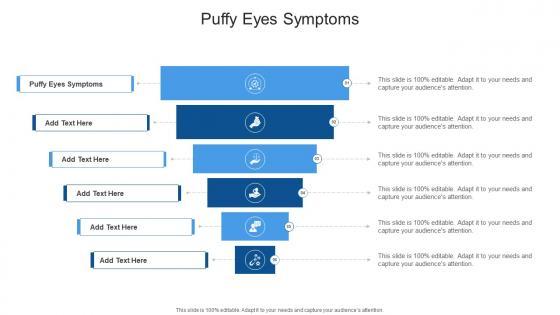 Presenting our innovatively-designed set of slides titled Puffy Eyes Symptoms In Powerpoint And Google Slides Cpb. This completely editable PowerPoint graphic exhibits Puffy Eyes Symptoms that will help you convey the message impactfully. It can be accessed with Google Slides and is available in both standard screen and widescreen aspect ratios. Apart from this, you can download this well-structured PowerPoint template design in different formats like PDF, JPG, and PNG. So, click the download button now to gain full access to this PPT design.