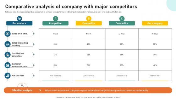 Following slide showcases comparative assessment of company sales performance with competitors based on metrics such a cycle time, lead qualification, etc. Do you have to make sure that everyone on your team knows about any specific topic I yes, then you should give Comparative Analysis Of Company Sample Pitch Deck For Video Ppt Template a try. Our experts have put a lot of knowledge and effort into creating this impeccable Comparative Analysis Of Company Sample Pitch Deck For Video Ppt Template. You can use this template for your upcoming presentations, as the slides are perfect to represent even the tiniest detail. You can download these templates from the Slidegeeks website and these are easy to edit. So grab these today
