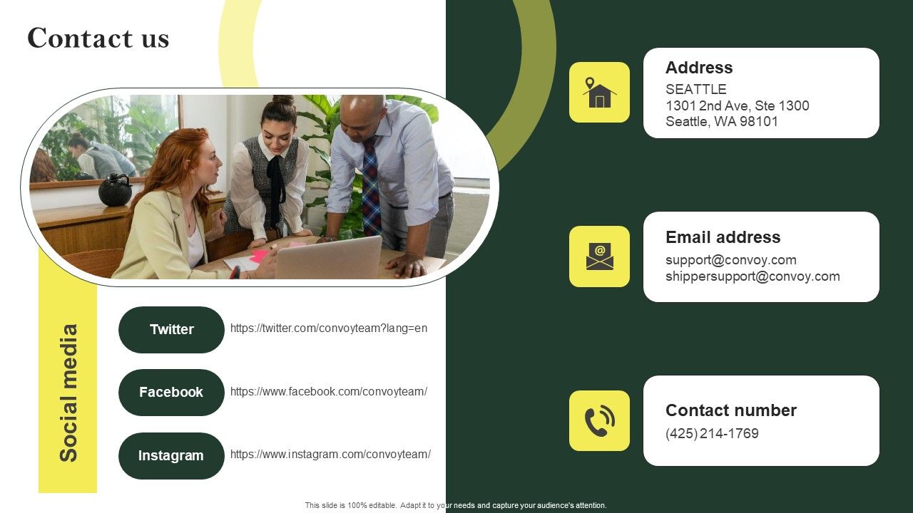 Explore a selection of the finest Contact Us Logistic Company Investor Fund Raising Pitch Deck Infographics PDF here. With a plethora of professionally designed and pre-made slide templates, you can quickly and easily find the right one for your upcoming presentation. You can use our Contact Us Logistic Company Investor Fund Raising Pitch Deck Infographics PDF to effectively convey your message to a wider audience. Slidegeeks has done a lot of research before preparing these presentation templates. The content can be personalized and the slides are highly editable. Grab templates today from Slidegeeks.
