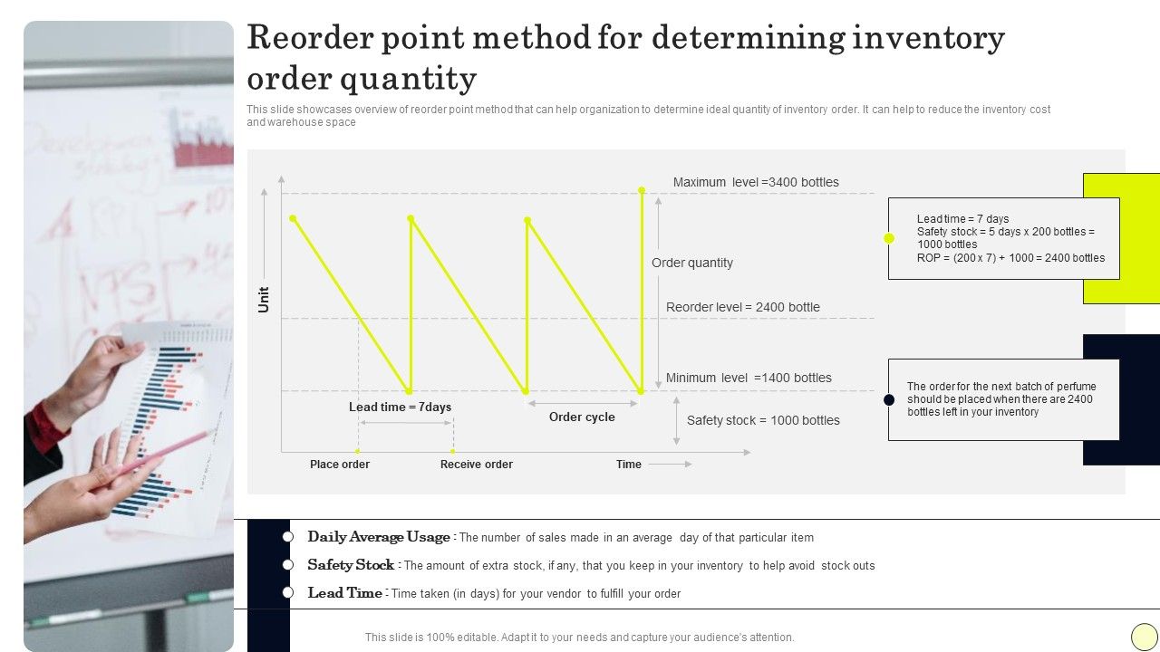 This slide showcases overview of reorder point method that can help organization to determine ideal quantity of inventory order. It can help to reduce the inventory cost and warehouse space. Get a simple yet stunning designed Reorder Point Method For Determining Inventory Order Quantity Microsoft PDF. It is the best one to establish the tone in your meetings. It is an excellent way to make your presentations highly effective. So, download this PPT today from Slidegeeks and see the positive impacts. Our easy to edit Reorder Point Method For Determining Inventory Order Quantity Microsoft PDF can be your go to option for all upcoming conferences and meetings. So, what are you waiting for Grab this template today.