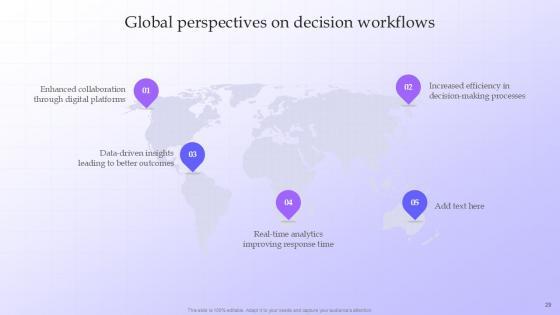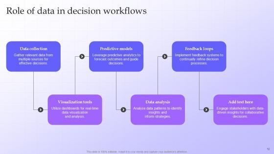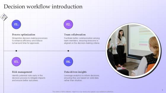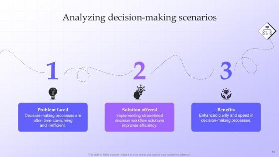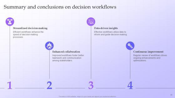 This presentation deck contains Decision-Making Process, Choice Workflow, Decision Procedure, Decision Process Flow, Selection Workflow professionally designed templates that eliminate the hassle of creating visually appealing presentations for you. It is your perfect option to communicate your thoughts in an easy-to-understand and effective manner. This Decision Workflow Ppt Summary Powerpoint Ppt Template Bundles comes with a wide range of features like high-quality, graphics and 100 percent customizable layout. Graphs, charts, and polls are attention-grabbing visually interactive elements of this presentation bundle that will lock the eye of spectators on the screen. It also contains text styles, colors, background themes, and other design elements that perfectly complement each other and create a stunning template bundle. Take advantage of this PowerPoint Set to upgrade your presentation game and steer back your competitors.