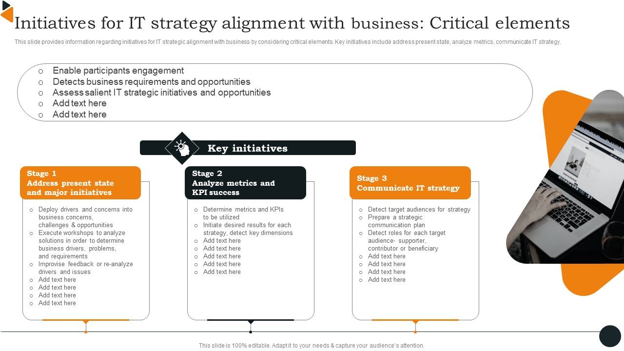 Initiatives For IT Strategy Alignment With Business Critical Elements Template PDF with all 9 slides: