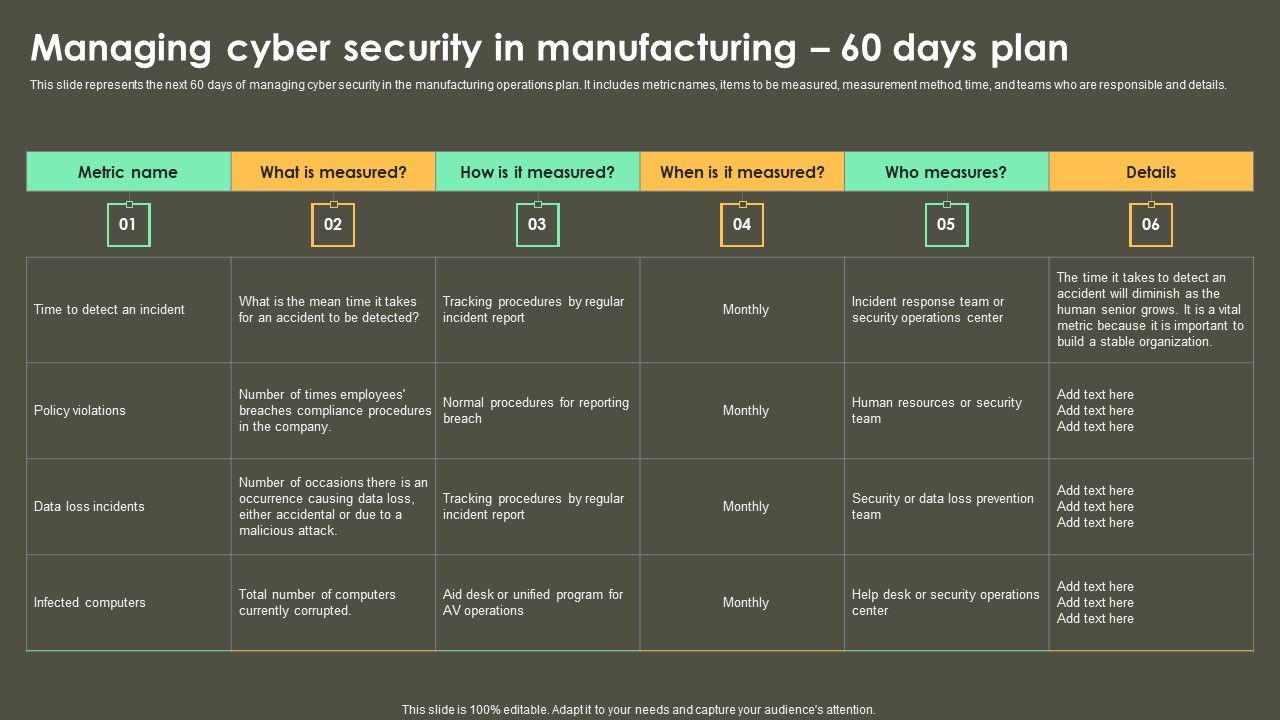 Iot Integration In Manufacturing Managing Cyber Security In Manufacturing 60 Days Plan Topics PDF