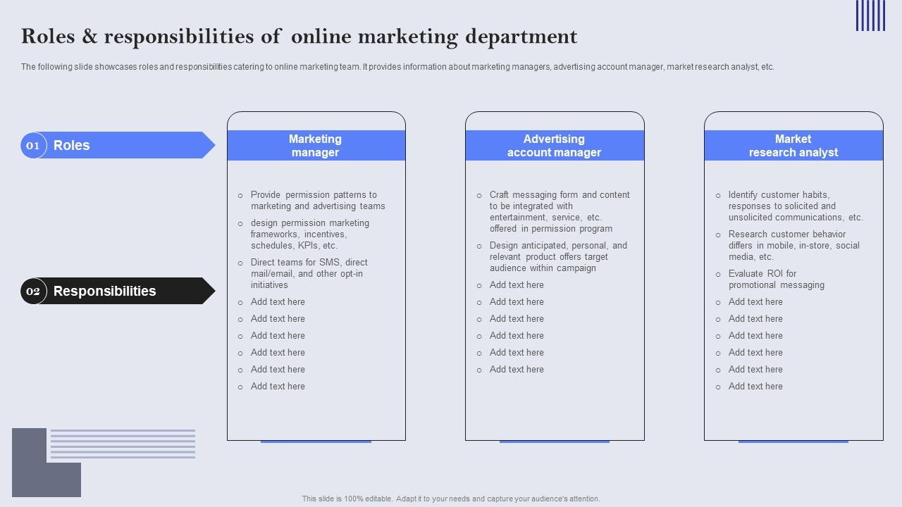 Roles And Responsibilities Of Online Marketing Department Ppt PowerPoint Presentation Diagram Images PDF