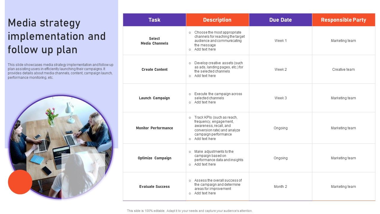 This slide showcases media strategy implementation and follow up plan assisting users in efficiently launching their campaigns. It provides details about media channels, content, campaign launch, performance monitoring, etc. Get a simple yet stunning designed Media Strategy Implementation And Follow Up Plan Download PDF. It is the best one to establish the tone in your meetings. It is an excellent way to make your presentations highly effective. So, download this PPT today from Slidegeeks and see the positive impacts. Our easy to edit Media Strategy Implementation And Follow Up Plan Download PDF can be your go to option for all upcoming conferences and meetings. So, what are you waiting for Grab this template today.