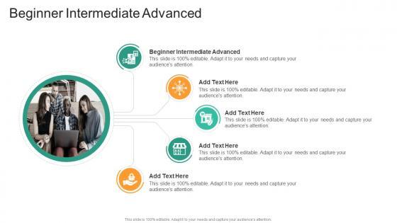 Introducing our well-designed Beginner Intermediate Advanced In Powerpoint And Google Slides Cpb. This PowerPoint design presents information on topics like Beginner Intermediate Advanced. As it is predesigned it helps boost your confidence level. It also makes you a better presenter because of its high-quality content and graphics. This PPT layout can be downloaded and used in different formats like PDF, PNG, and JPG. Not only this, it is available in both Standard Screen and Widescreen aspect ratios for your convenience. Therefore, click on the download button now to persuade and impress your audience. Our Beginner Intermediate Advanced In Powerpoint And Google Slides Cpb are topically designed to provide an attractive backdrop to any subject. Use them to look like a presentation pro.