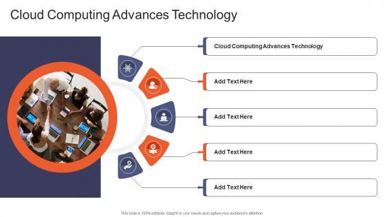Introducing our well-designed Cloud Computing Advances Technology In Powerpoint And Google Slides Cpb. This PowerPoint design presents information on topics like Cloud Computing Advances Technology. As it is predesigned it helps boost your confidence level. It also makes you a better presenter because of its high-quality content and graphics. This PPT layout can be downloaded and used in different formats like PDF, PNG, and JPG. Not only this, it is available in both Standard Screen and Widescreen aspect ratios for your convenience. Therefore, click on the download button now to persuade and impress your audience. Our Cloud Computing Advances Technology In Powerpoint And Google Slides Cpb are topically designed to provide an attractive backdrop to any subject. Use them to look like a presentation pro.