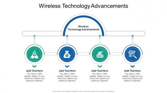 Introducing our well designed Wireless Technology Advancements In Powerpoint And Google Slides Cpb. This PowerPoint design presents information on topics like Wireless Technology Advancements. As it is predesigned it helps boost your confidence level. It also makes you a better presenter because of its high quality content and graphics. This PPT layout can be downloaded and used in different formats like PDF, PNG, and JPG. Not only this, it is available in both Standard Screen and Widescreen aspect ratios for your convenience. Therefore, click on the download button now to persuade and impress your audience. Our Wireless Technology Advancements In Powerpoint And Google Slides Cpb are topically designed to provide an attractive backdrop to any subject. Use them to look like a presentation pro.