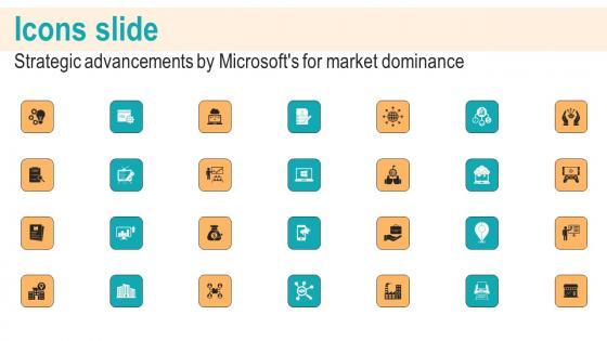 Introducing our well designed Icons Slide Strategic Advancements By Microsofts For Market Dominance Template Pdf set of slides. The slide displays editable icons to enhance your visual presentation. The icons can be edited easily. So customize according to your business to achieve a creative edge. Download and share it with your audience. Our Icons Slide Strategic Advancements By Microsofts For Market Dominance Template Pdf are topically designed to provide an attractive backdrop to any subject. Use them to look like a presentation pro.