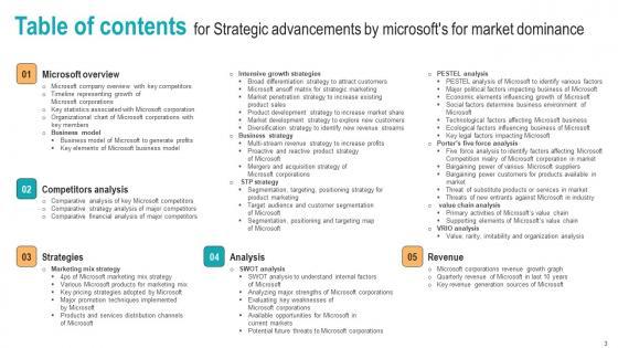 From laying roadmaps to briefing everything in detail, our templates are perfect for you. You can set the stage with your presentation slides. All you have to do is download these easy-to-edit and customizable templates. Strategic Advancements By Microsofts For Market Dominance Table Of Contents Summary Pdf will help you deliver an outstanding performance that everyone would remember and praise you for. Do download this presentation today. Our Strategic Advancements By Microsofts For Market Dominance Table Of Contents Summary Pdf are topically designed to provide an attractive backdrop to any subject. Use them to look like a presentation pro.