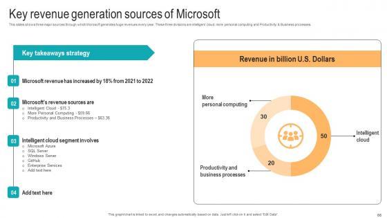 This slides shows three major sources through which Microsoft generates huge revenues every year. These three divisions are intelligent cloud, more personal computing and Productivity and Business processes. This modern and well-arranged Key Revenue Generation Sources Of Microsoft Strategic Advancements By Microsofts Pictures Pdf provides lots of creative possibilities. It is very simple to customize and edit with the Powerpoint Software. Just drag and drop your pictures into the shapes. All facets of this template can be edited with Powerpoint, no extra software is necessary. Add your own material, put your images in the places assigned for them, adjust the colors, and then you can show your slides to the world, with an animated slide included. This slides shows three major sources through which Microsoft generates huge revenues every year. These three divisions are intelligent cloud, more personal computing and Productivity and Business processes.