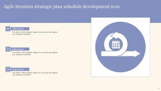 Improve your presentation delivery using this Agile Iteration Strategic Plan Ppt PowerPoint Presentation Complete Deck With Slides. Support your business vision and objectives using this well-structured PPT deck. This template offers a great starting point for delivering beautifully designed presentations on the topic of your choice. Comprising ten this professionally designed template is all you need to host discussion and meetings with collaborators. Each slide is self-explanatory and equipped with high-quality graphics that can be adjusted to your needs. Therefore, you will face no difficulty in portraying your desired content using this PPT slideshow. This PowerPoint slideshow contains every important element that you need for a great pitch. It is not only editable but also available for immediate download and utilization. The color, font size, background, shapes everything can be modified to create your unique presentation layout. Therefore, download it now.