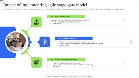 This slide mentions the impact of implementing hybrid stage gate framework with features of agile methodology for handling project development and management. It includes driving innovation, highly adaptive, accelerating development. Pitch your topic with ease and precision using this Impact Of Implementing Agile Stage Gate Model Professional Pdf. This layout presents information on Drives Innovation, Highly Adaptive, Accelerates Development. It is also available for immediate download and adjustment. So, changes can be made in the color, design, graphics or any other component to create a unique layout. This slide mentions the impact of implementing hybrid stage gate framework with features of agile methodology for handling project development and management. It includes driving innovation, highly adaptive, accelerating development.