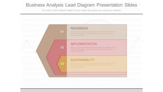 This is a business analysis lead diagram presentation slides. This is a three stage process. The stages in this process are readiness, implementation, sustainability.