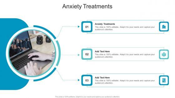 Introducing our well designed Anxiety Treatments In Powerpoint And Google Slides Cpb. This PowerPoint design presents information on topics like Anxiety Treatments. As it is predesigned it helps boost your confidence level. It also makes you a better presenter because of its high quality content and graphics. This PPT layout can be downloaded and used in different formats like PDF, PNG, and JPG. Not only this, it is available in both Standard Screen and Widescreen aspect ratios for your convenience. Therefore, click on the download button now to persuade and impress your audience. Our Anxiety Treatments In Powerpoint And Google Slides Cpb are topically designed to provide an attractive backdrop to any subject. Use them to look like a presentation pro.