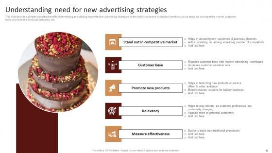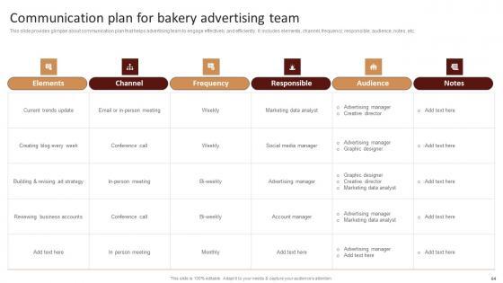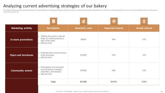 This Strategic Advertising Plan For Bakehouse Business Ppt Powerpoint Presentation Complete Deck will give you an idea about business planning and how it helps in achievement of objectives and goals. With eighty five slides, this complete deck aims to ensure that business planning is internalized in the audience. The 100 precent customisable template is also colour coded in a way that visually the message has a very clear impact. The presenter might not be a business expert, but the high quality PPT forces him or her to rise to the ocassion. Download now to wow a roomful of people. Our Strategic Advertising Plan For Bakehouse Business Ppt Powerpoint Presentation Complete Deck are topically designed to provide an attractive backdrop to any subject. Use them to look like a presentation pro.