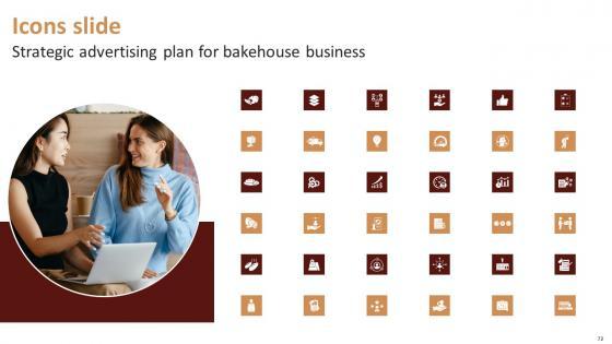 Download our innovative and attention grabbing Icons Slide Strategic Advertising Plan For Bakehouse Business Sample Pdf template. The set of slides exhibit completely customizable icons. These icons can be incorporated into any business presentation. So download it immediately to clearly communicate with your clientele. Our Icons Slide Strategic Advertising Plan For Bakehouse Business Sample Pdf are topically designed to provide an attractive backdrop to any subject. Use them to look like a presentation pro.