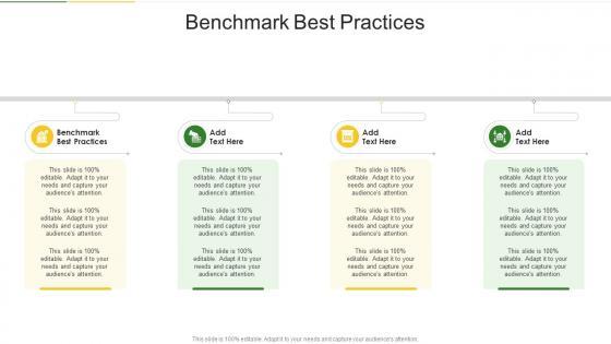 Presenting our innovatively designed set of slides titled Benchmark Best Practices In Powerpoint And Google Slides Cpb. This completely editable PowerPoint graphic exhibits Benchmark Best Practices that will help you convey the message impactfully. It can be accessed with Google Slides and is available in both standard screen and widescreen aspect ratios. Apart from this, you can download this well structured PowerPoint template design in different formats like PDF, JPG, and PNG. So, click the download button now to gain full access to this PPT design. Our Benchmark Best Practices In Powerpoint And Google Slides Cpb are topically designed to provide an attractive backdrop to any subject. Use them to look like a presentation pro.