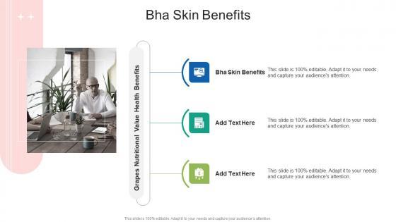 Presenting our innovatively-designed set of slides titled Bha Skin Benefits In Powerpoint And Google Slides Cpb. This completely editable PowerPoint graphic exhibits Bha Skin Benefits that will help you convey the message impactfully. It can be accessed with Google Slides and is available in both standard screen and widescreen aspect ratios. Apart from this, you can download this well-structured PowerPoint template design in different formats like PDF, JPG, and PNG. So, click the download button now to gain full access to this PPT design. Our Bha Skin Benefits In Powerpoint And Google Slides Cpb are topically designed to provide an attractive backdrop to any subject. Use them to look like a presentation pro.