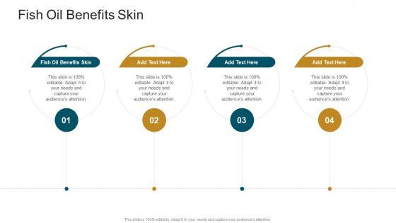 Introducing our well-designed Fish Oil Benefits Skin In Powerpoint And Google Slides Cpb. This PowerPoint design presents information on topics like Fish Oil Benefits Skin. As it is predesigned it helps boost your confidence level. It also makes you a better presenter because of its high-quality content and graphics. This PPT layout can be downloaded and used in different formats like PDF, PNG, and JPG. Not only this, it is available in both Standard Screen and Widescreen aspect ratios for your convenience. Therefore, click on the download button now to persuade and impress your audience. Our Fish Oil Benefits Skin In Powerpoint And Google Slides Cpb are topically designed to provide an attractive backdrop to any subject. Use them to look like a presentation pro.