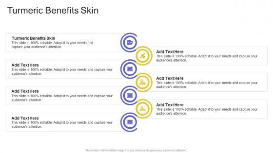 Introducing our well designed Turmeric Benefits Skin In Powerpoint And Google Slides Cpb. This PowerPoint design presents information on topics like Turmeric Benefits Skin. As it is predesigned it helps boost your confidence level. It also makes you a better presenter because of its high-quality content and graphics. This PPT layout can be downloaded and used in different formats like PDF, PNG, and JPG. Not only this, it is available in both Standard Screen and Widescreen aspect ratios for your convenience. Therefore, click on the download button now to persuade and impress your audience. Our Turmeric Benefits Skin In Powerpoint And Google Slides Cpb are topically designed to provide an attractive backdrop to any subject. Use them to look like a presentation pro.