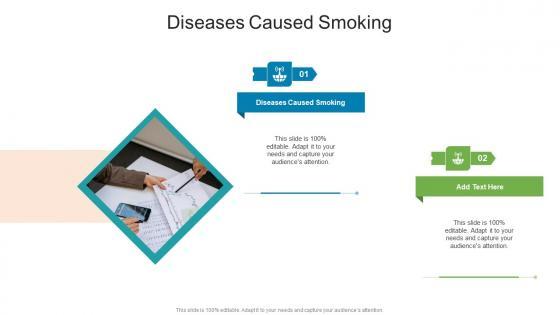 Introducing our well designed Diseases Caused Smoking In Powerpoint And Google Slides Cpb. This PowerPoint design presents information on topics like Diseases Caused Smoking. As it is predesigned it helps boost your confidence level. It also makes you a better presenter because of its high quality content and graphics. This PPT layout can be downloaded and used in different formats like PDF, PNG, and JPG. Not only this, it is available in both Standard Screen and Widescreen aspect ratios for your convenience. Therefore, click on the download button now to persuade and impress your audience. Our Diseases Caused Smoking In Powerpoint And Google Slides Cpb are topically designed to provide an attractive backdrop to any subject. Use them to look like a presentation pro.