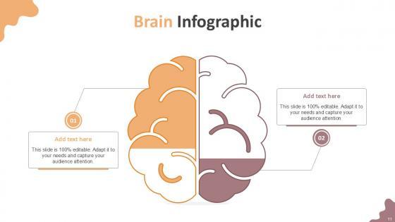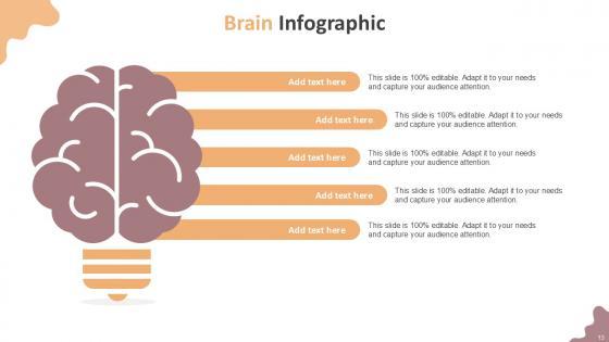 If designing a presentation takes a lot of your time and resources and you are looking for a better alternative, then this human brain infographics measures organizational ppt powerpoint presentation complete deck is the right fit for you. This is a prefabricated set that can help you deliver a great presentation on the topic. All the twelve slides included in this sample template can be used to present a birds-eye view of the topic. These slides are also fully editable, giving you enough freedom to add specific details to make this layout more suited to your business setting. Apart from the content, all other elements like color, design, theme are also replaceable and editable. This helps in designing a variety of presentations with a single layout. Not only this, you can use this PPT design in formats like PDF, PNG, and JPG once downloaded. Therefore, without any further ado, download and utilize this sample presentation as per your liking.