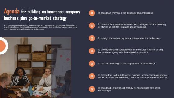 This slide presents the Agenda of the insurance agency business plan. The purpose of this slide is to provide a brief discerption about the purpose of preparing the deck and the key important facts being taken in consideration while preparing a business deck Welcome to our selection of the Agenda For Building An Insurance Company Business Plan Go To Market Strategy Rules Pdf These are designed to help you showcase your creativity and bring your sphere to life. Planning and Innovation are essential for any business that is just starting out. This collection contains the designs that you need for your everyday presentations. All of our PowerPoints are 100 percent editable, so you can customize them to suit your needs. This multi-purpose template can be used in various situations. Grab these presentation templates today. This slide presents the Agenda of the insurance agency business plan. The purpose of this slide is to provide a brief discerption about the purpose of preparing the deck and the key important facts being taken in consideration while preparing a business deck