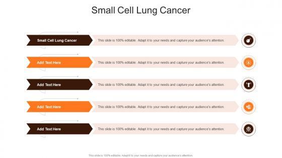 Presenting our innovatively designed set of slides titled Small Cell Lung Cancer In Powerpoint And Google Slides Cpb. This completely editable PowerPoint graphic exhibits Small Cell Lung Cancer that will help you convey the message impactfully. It can be accessed with Google Slides and is available in both standard screen and widescreen aspect ratios. Apart from this, you can download this well structured PowerPoint template design in different formats like PDF, JPG, and PNG. So, click the download button now to gain full access to this PPT design. Our Small Cell Lung Cancer In Powerpoint And Google Slides Cpb are topically designed to provide an attractive backdrop to any subject. Use them to look like a presentation pro.