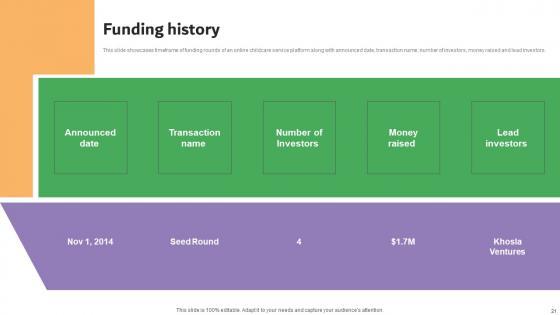 This slide showcases timeframe of funding rounds of an online childcare service platform along with announced date, transaction name, number of investors, money raised and lead investors. Do you have an important presentation coming up Are you looking for something that will make your presentation stand out from the rest Look no further than Funding History Carelulu Shareholders Fund Raising Pitch Deck Topics Pdf. With our professional designs, you can trust that your presentation will pop and make delivering it a smooth process. And with Slidegeeks, you can trust that your presentation will be unique and memorable. So why wait Grab Funding History Carelulu Shareholders Fund Raising Pitch Deck Topics Pdf today and make your presentation stand out from the rest This slide showcases timeframe of funding rounds of an online childcare service platform along with announced date, transaction name, number of investors, money raised and lead investors.