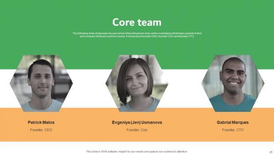The following slide showcases key personnel of founding team of an online marketplace that helps parents to find and compare childcare services nearby. It showcases founder CRO, founder COO and founder CTO. Do you have to make sure that everyone on your team knows about any specific topic I yes, then you should give Core Team Carelulu Shareholders Fund Raising Pitch Deck Information Pdf a try. Our experts have put a lot of knowledge and effort into creating this impeccable Core Team Carelulu Shareholders Fund Raising Pitch Deck Information Pdf. You can use this template for your upcoming presentations, as the slides are perfect to represent even the tiniest detail. You can download these templates from the Slidegeeks website and these are easy to edit. So grab these today The following slide showcases key personnel of founding team of an online marketplace that helps parents to find and compare childcare services nearby. It showcases founder CRO, founder COO and founder CTO.