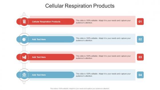 Introducing our well designed Cellular Respiration Products In Powerpoint And Google Slides Cpb. This PowerPoint design presents information on topics like Cellular Respiration Products. As it is predesigned it helps boost your confidence level. It also makes you a better presenter because of its high-quality content and graphics. This PPT layout can be downloaded and used in different formats like PDF, PNG, and JPG. Not only this, it is available in both Standard Screen and Widescreen aspect ratios for your convenience. Therefore, click on the download button now to persuade and impress your audience. Our Cellular Respiration Products In Powerpoint And Google Slides Cpb are topically designed to provide an attractive backdrop to any subject. Use them to look like a presentation pro.