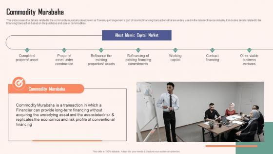 This slide covers the details related to the parallel commodity murabaha, a type of Islamic financing transaction that is used to finance a purchase without involving interest payments. It includes details related to the structure that allows conventional banks to participate by providing traditional debt. Slidegeeks is here to make your presentations a breeze with Parallel Commodity Murabaha Comprehensive Guide Islamic Formats PDF With our easy-to-use and customizable templates, you can focus on delivering your ideas rather than worrying about formatting. With a variety of designs to choose from, you are sure to find one that suits your needs. And with animations and unique photos, illustrations, and fonts, you can make your presentation pop. So whether you are giving a sales pitch or presenting to the board, make sure to check out Slidegeeks first This slide covers the details related to the parallel commodity murabaha, a type of Islamic financing transaction that is used to finance a purchase without involving interest payments. It includes details related to the structure that allows conventional banks to participate by providing traditional debt.